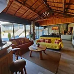 La Quinta Da Alqueidosa - Casa De Campo Corujeira cuenta con una terraza con vistas a las montañas y una piscina.